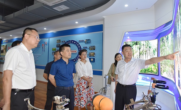 在海膠(海南)智能科技公司,羅精暉一行參觀了科技展廳,全面了解海南橡膠全產(chǎn)業(yè)鏈科技創(chuàng)新情況。